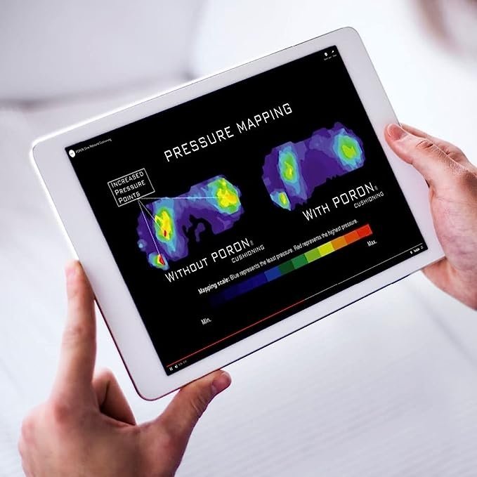 - PORON Medical Grade Top Cover: Offers a softer, lighter cushioning with slower rebound for even distribution of body weight over the foot’s plantar surface.