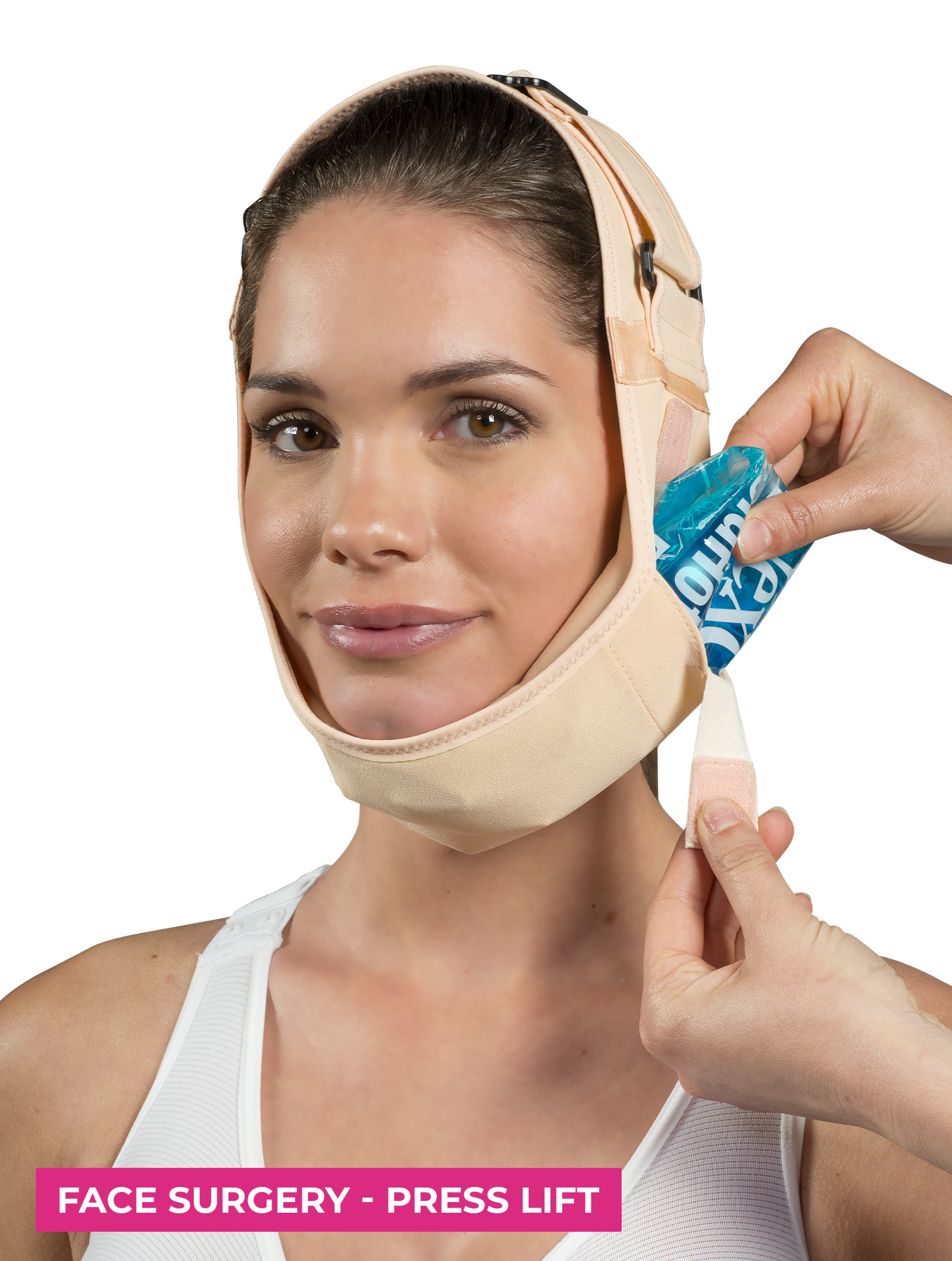 The Van de Ven Facemask is meant to give support to the soft tissue of your face after surgery. It keeps them in their desired position, prevents dead space and the creation of scar tissue in them and reduces post operative swelling.